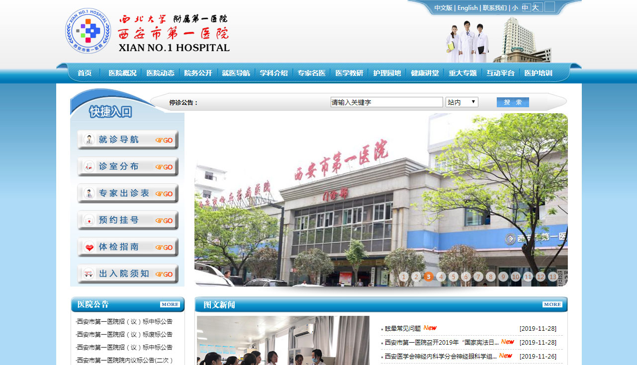 西安市*醫(yī)院(西北大學(xué)附屬*醫(yī)院)建于1941年,是西安市衛(wèi)生健康委直屬的三級甲等綜合性醫(yī)院,占地面積15386.16㎡,建筑面積38308.11㎡。醫(yī)院編制床位700張,附設(shè)西安市眼科醫(yī)院、西安市心血管病醫(yī)院及52個(gè)臨床醫(yī)療和醫(yī)技科室,設(shè)有陜西省眼科研究所、陜西省眼科疾病臨床醫(yī)學(xué)研究中心、西安市心血管病研究室、西安市皮膚病研究室、西安市臨床超聲醫(yī)學(xué)研究室、西安地區(qū)超聲診斷*會診中心以及西安市眼庫。