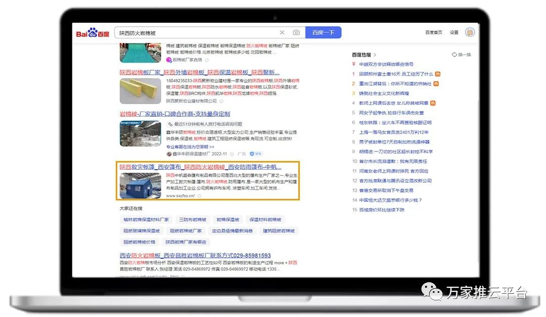 萬家推云平臺通過企業(yè)官網(wǎng)SEO、知識獲客、分類信息、B2B商盟、視頻發(fā)布等工具在各大搜索引擎平臺,為中帆盛森企業(yè)進(jìn)行關(guān)鍵詞推廣以及內(nèi)容發(fā)布。通過運營人員專業(yè)布局,成功為中帆盛森增強企業(yè)曝光度,獲取核心排名,抓住更多流量。